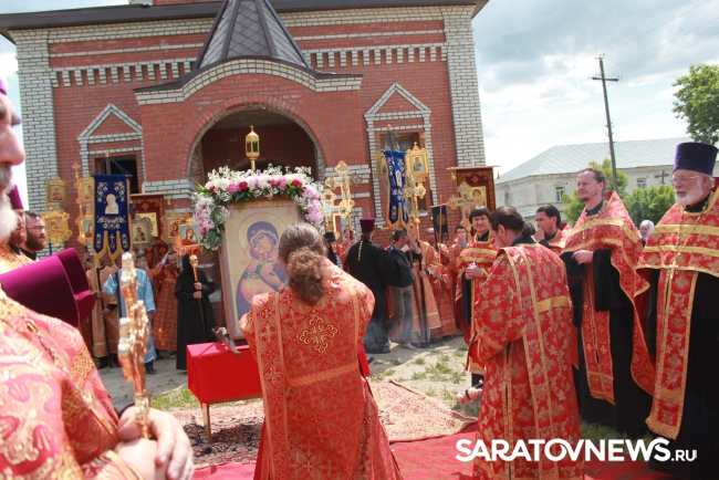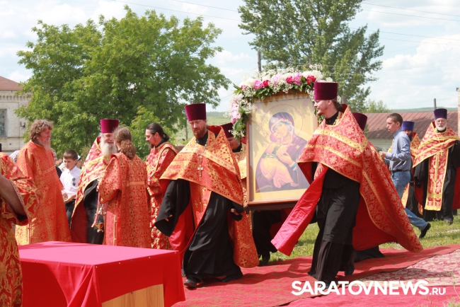 В Вольске в день празднования в честь Владимирской иконы Божией Матери жители города прошли крестным ходом от Троицкого собора до Владимирского женского монастыря.