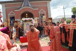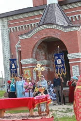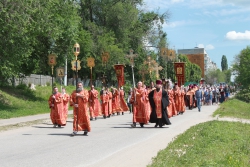 По окончании Литургии духовенство и прихожане благочиния прошли крестным ходом до Владимирского женского монастыря. Возле поклонного креста был совершен праздничный молебен.