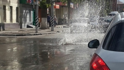 Автомобилисты призывают другу друга быть осторожными, поскольку вода из "фонтана" бьет с камнями. В настоящее время из-за случившегося в районе коммунальной аварии образовалась пробка.