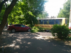 Сообщается, что водитель автобуса курсирующего по маршруту №5, почуствовал себя плохо, выехал на полосу встречного движения и протаранил две машины – "Хонду" и "Шкоду".