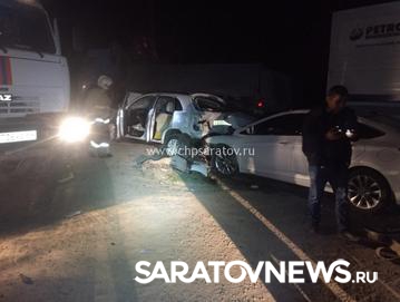 "Камаз" зацепил "Мицубиси Asх", которой управлял 31-летний водитель из Саратова, "ВАЗ-2112", за рулем которого был 28-летний мужчина из поселка Красный Яр Жирновского района Волгоградской области, а также "Хендай i-40" под управлением 37-летнего мужчины из села Поповка Саратовского района. Все эти машины пытались обогнать фуру.