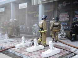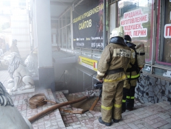 Причины пожара и площадь возгорания будет установлена позднее. На место прибыл собственник магазина, который в настоящее время общается с прибывшими полицейскими. В результате ЧП никто не пострадал.