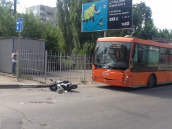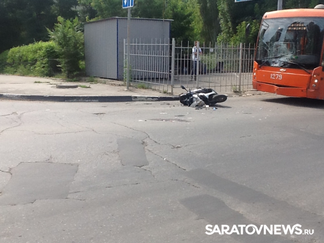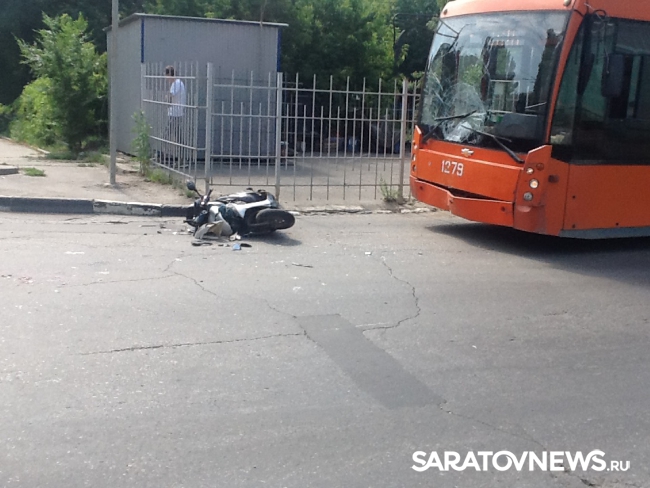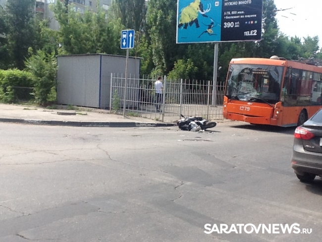Сегодня около 10:00 в Саратове мотоциклист столкнулся с троллейбусом третьего маршрута. По данным очевидцев, авария случилась на перекрестке Астраханской и Новоузенской.