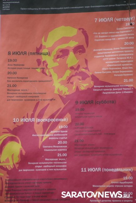 Экскурсия стартовала от дома итальянского художника Гектора Баракки, жившего в Саратове с 1873 года. Его преподавательская деятельность повлияла на становление таких саратовских художников, как Борисов-Мусатов, Кузнецов, Уткин, Петров-Водкин.