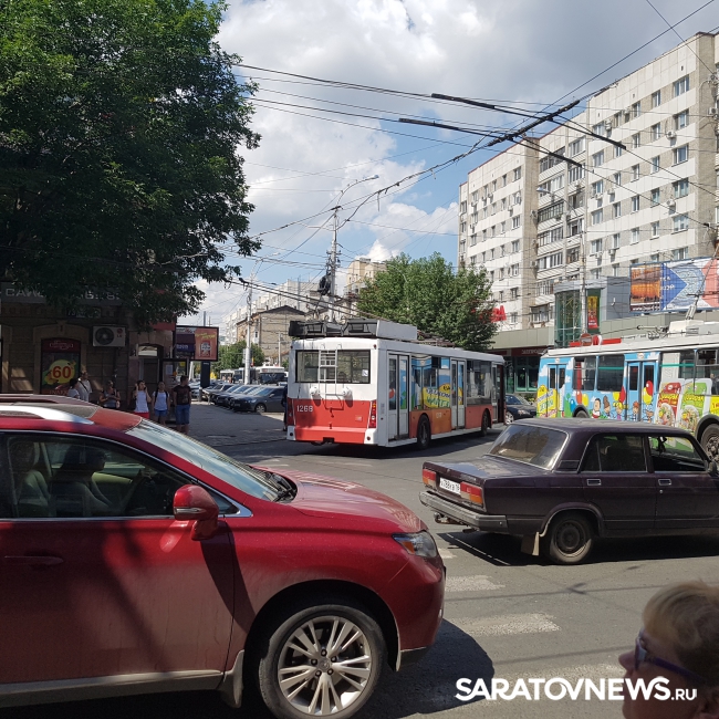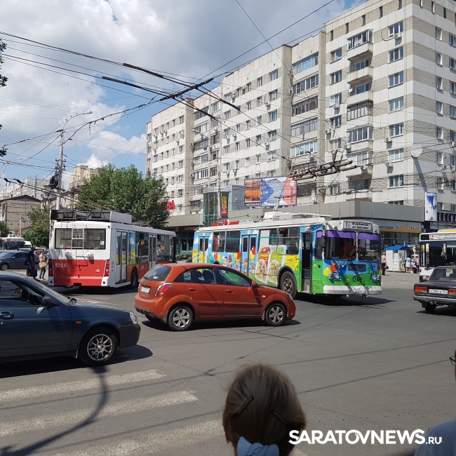 В центре Саратова из-за дорожного инцидента с общественным транспортом образовалась пробка. По информации очевидца, причиной транспортного коллапса стало разрушение рогов троллейбуса маршрута №1.