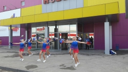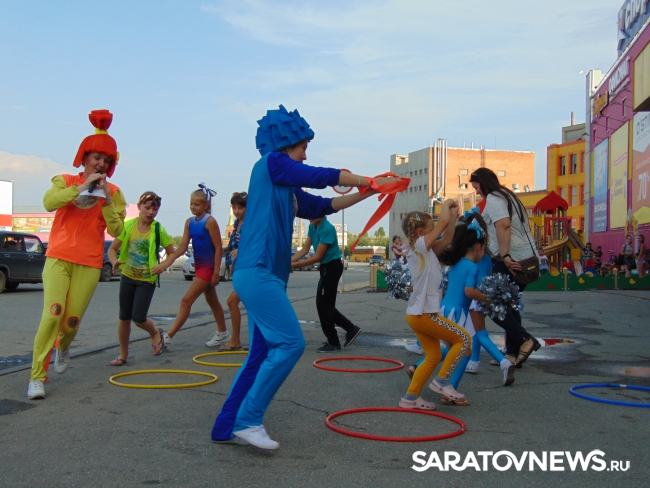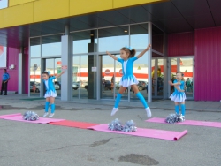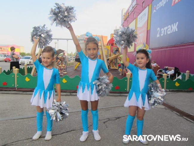Для начала гостей поприветствовал профессиональный ведущий свадебного агентства "Горько", он представил первых артистов: головокружительные трюки показала Саратовская областная федерация черлидинга. Кстати, в этот раз на празднике присутствовали и самые юные члены федерации: малышки в тематических костюмах и с помпонами в руках вызвали настоящий шквал аплодисментов.