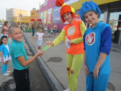 А пока родители колесили, малышей развлекали представители школы эстетического воспитания для детей, подростков и молодежи Ликей-С. В гости к ребятам пришли знаменитые персонажи мультфильма "Фиксики". Они рассказали ребятам о дружбе, а еще устроили массовый флешмоб: дети и взрослые с радостью повторяли за Фиксиками движения зажигательного танца.