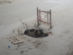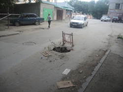 В Саратове у дома № 3 на 1-ом Станционном проезде образовался провал асфальта. По словам местных жителей, власти не могут заделать его уже почти месяц. Неоднократное обращение к представителям властей не дают пока никакого результата.