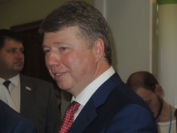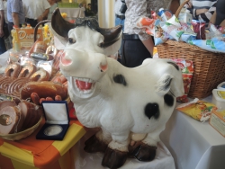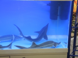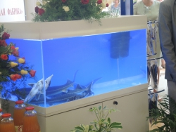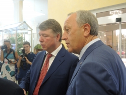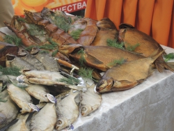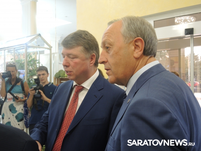 Сегодня глава департамента нацполитики и туризма Москвы Владимир Черников и губернатор Валерий Радаев во время осмотра выставки в фойе правительстве Саратовской области увидели живых стерлядок, выращенных специалистами СГАУ в установках закрытого цикла. Кроме того, умельцы из Энгельса подарили Черникову деревянный московский рубль и саратовский рублик.