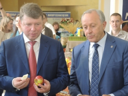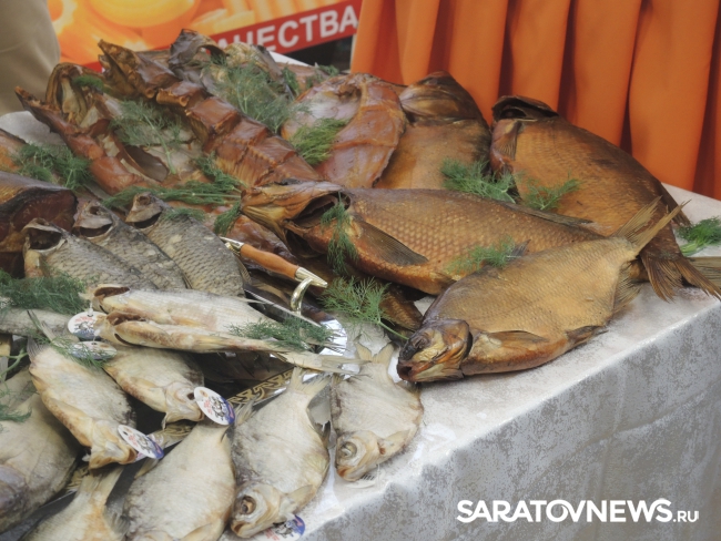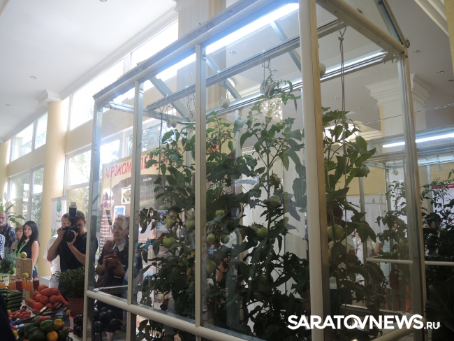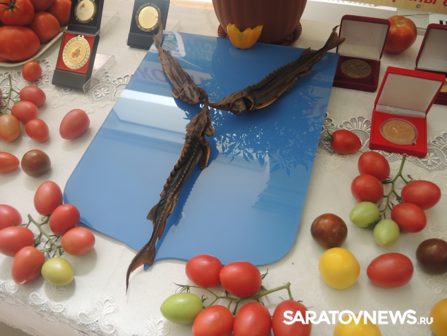 На выставке представитель СГАУ сообщил Радаеву и Черникову, что в университете выращивают стерлядь на продажу. "До товарной массы она растет 4 года", - сказал второкурсник вуза, представляя экспозицию. "А вы ее выращиваете в аквариумах или в природе?", - спросил губернатор. "В установках закрытого цикла", - пояснила министр сельского хозяйства Татьяна Кравцева. "Рекламируйте ее. Нам еще нужно корм разработать, чтобы кормление было приближенное к природному, тогда это будет еще привлекательнее для москвичей", - сказал губернатор. Затем Черникову и Радаеву представили овощи от комбината "Волга", и рассказали о планах построить овощехранилище на 2,5 тысячи тонн, а также показали "кремлевский окорок" и краковскую колбасу.