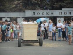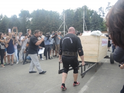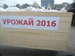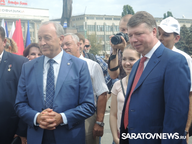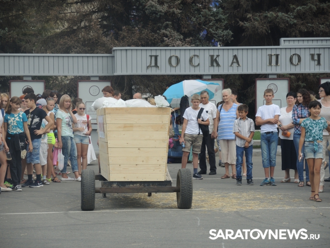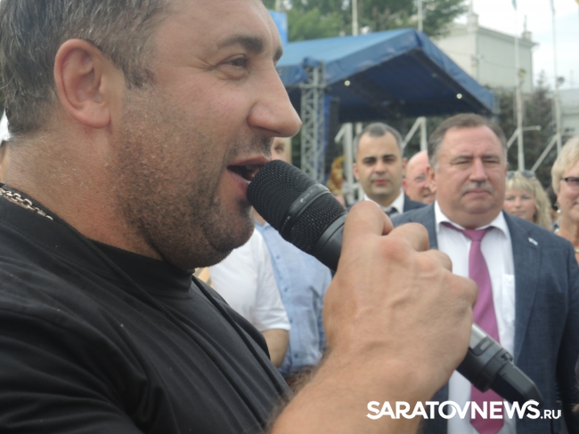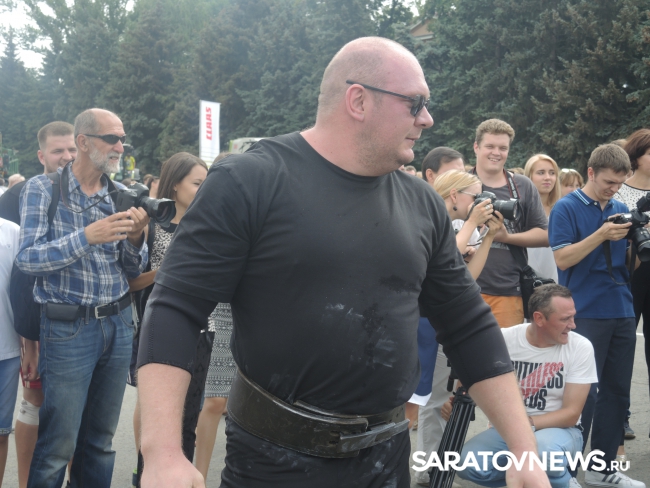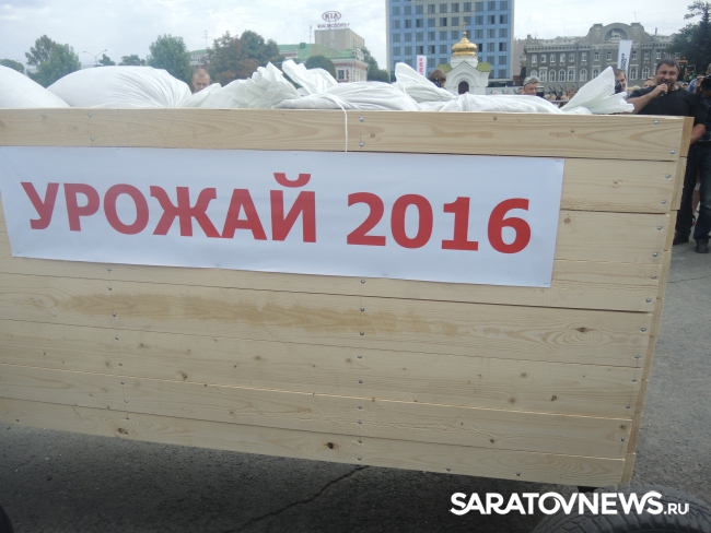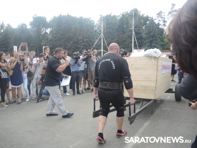 Перед Владимиром Черниковым и Валерием Радаевым выступили саратовские силачи во главе с Вячеславом Максютой. Саратовец протащил мимо Черникова телегу с надписью "Урожай-2016" весом 700 кг.