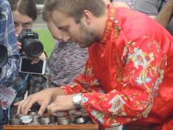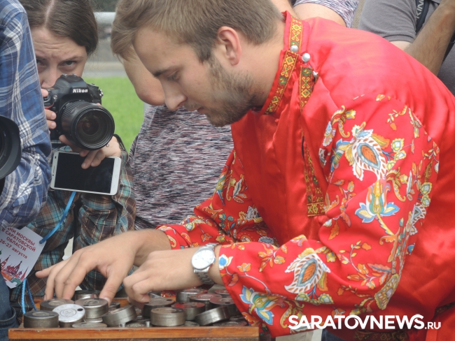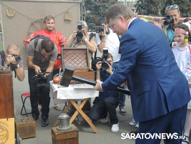 Сегодня на первом фестивале саратовского калача на Театральной площади города начальнику департамента нацполитики и туризма Москвы Владимиру Черникову показали мастерство саратовских силачей и рассказали о местном обществе трезвости.