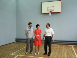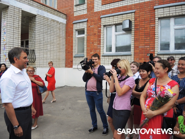 После участия в торжественной линейке в школе поселка, Володин осмотрел новые классы, в том числе кабинет информатики, столовую и принял участие в открытии школьного спортзала.