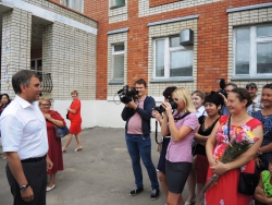 "Спасибо вам большое за школу, за новый спортзал, дети теперь будут с радостью там заниматься", - сказала одна из родительниц. "Вам спасибо за детей", - ответил Вячеслав Володин.