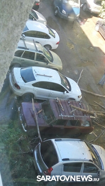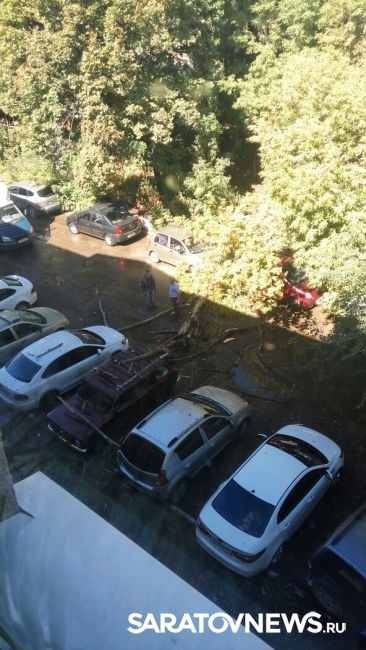 Этой ночью из-за сильного ветра в Саратове на автомобили упало дерево. Как сообщили очевидцы в группе "Саратов-Онлайн" в соцсети "Вконтакте", дерево рухнуло в доме на Мурманском проезде. Крона и обломки веток зацепили четыре легковых автомобиля, припаркованных во дворе. По предварительным данным, люди не пострадали.