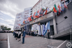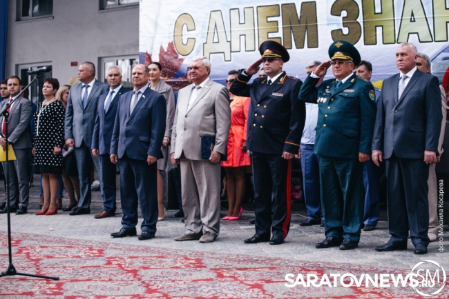 Традиционно на линейке прошел парад флагов регионов РФ и иностранных государств, чьи представители поступили в этом году в вуз, а завершился торжественный митинг принятием почти пятитысячной армии студентов в семью Саратовской государственной юридической академии под гимн СГЮА и праздничный салют.