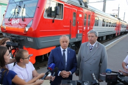 "На Приволжской железной дороге во второй раз в текущем году запускается новый подвижной состав. Сегодня были продемонстрированы технические возможности электропоезда серии ЭД9Э. В нем созданы комфортные условия для пассажиров, в том числе и для маломобильных групп населения. Такие пригородные электропоезда уже курсируют на территории Саратовской области. Компания ОАО "РЖД" нацелена на клиента, мы делаем все, чтобы нашим пассажирам было удобно", - отметил Сергей Альмеев.