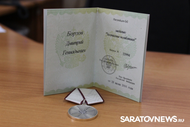 В Саратовской области медалью "За спасение погибавших" награжден участковый их Хвалынского района Дмитрий Борзов, который спас девять тонущих детей. Как сообщили в пресс-службе ГУ МВД по Саратовской области, соответствующий указ был подписан президентом Владимиром Путиным. Сегодня медалью Борзова наградил начальник ГУ МВД по Саратовской области генерал-лейтенант полиции Сергей Аренин.