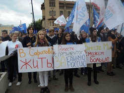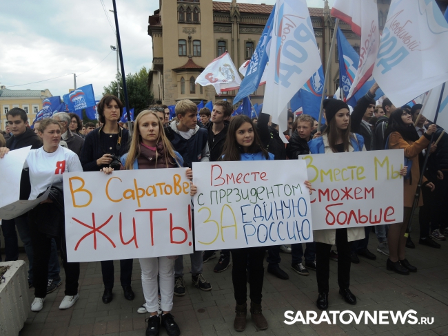 "Дорогие ребята, дорогие саратовцы! Наша "Единая Россия" одержала серьезную победу. Более 50 процентов саратовцев и россиян проголосовало за нее. Нас поддержала молодежь, старики. Они верят в нас и знают, что от нас зависит будущее. Это значит, что мы вместе. Мы вместе с президентом", - сказал доктор медицинских наук, профессор и будущий депутат саратовской городской думы нового созыва Николай Островский.