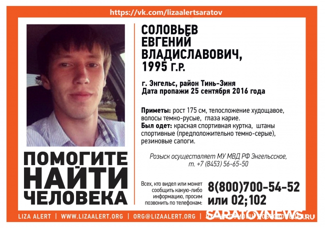 Всех, кто обладает любой информацией о его местонахождении, просят обращаться по телефонам: +7(8453)56-65-50, 8-800-700-54-52 или 02, 102.