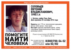 В Энгельсе разыскивается 21-летний Евгений Соловьев. Молодого человека последний раз видели 25 сентября в районе Тинь-Зинь. Информацию о розыске разместили в сообществе "Лиза Алерт Саратов" в социальной сети "ВКонтакте".