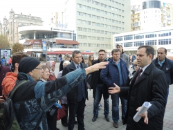 Общественники встретились с главой комитета дорожного хозяйства администрации Саратова Геннадием Свиридовым, заместителем директора ООО "Автотрасса" Тиграном Киракосяном, а также с жителями города.