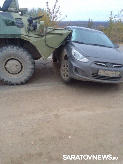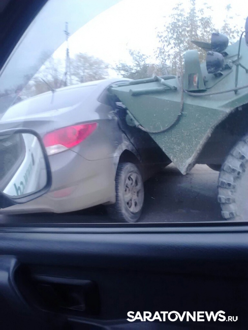 В Саратове произошло дорожно-транспортное происшествие с участие бронетранспортера. Об этом сегодня сообщают пользователи социальных сетей.