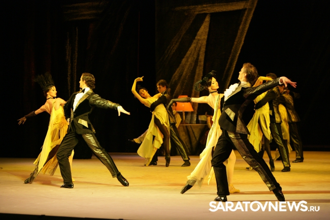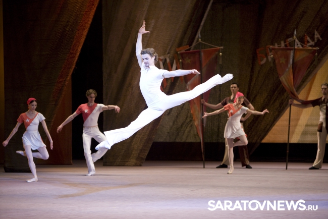Вчера в Саратове зрители смогли посмотреть новый балет Большого театра "Золотой век", премьера которого состоялась всего три дня назад в рамках проекта TheatreHD. Балет "Золотой век" - это возрождение традиции. У балета началась уже третья жизнь, ведь два раза он уже сходил со сцены. Но в Большом театре решили, что необходимо дать ему новый шанс, и не прогадали.