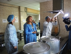 "Вопрос детского питания – это вопрос здоровья. Мы получаем после школ более 70 процентов детей, которые имеют различное отклонение в своем здоровье. Это в том числе и последствия тех безобразий, которые мы сегодня увидели. Начиная с санитарного состояния. Говорят, что чистота – залог здоровья, но о какой чистоте можно говорить, если в детском туалете для мальчиков нет никакой воды. Как после туалета, с какими руками они должны идти в столовую. В столовой нет мыла, нет горячей воды. И нет, не потому что ее не подают, там даже труб с горячей водой нет. Разве это нормально? Разве нормально, когда нет документов на продукты питания. В 73 школе нам давали плов с салом. Свинина с салом, хотя по всем нормативам, если свинина, то в ограниченном количестве и только мясо, но не сало. Вопросы есть и по хранению. Так, мы зашли в склад, где в больших емкостях сгущенное молоко, там же крупа какая-то, майонез, который вообще не должен употребляться в детских учреждениях. Аналогичная ситуация в детском саду №112. Плесень, которую мы увидели на сухофруктах… ", - сказал Ландо.