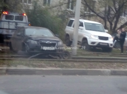 На 1-м проезде Танкистов около остановки "Сады" автомобиль "Шевроле Круз" перегородил трамвайные пути. Водитель бросил иномарку после того, как неудачно заехал на трамвайные пути, повредив автомобиль. Судя по предоставленным пользователями фотографиям "Шевроле" осталась без колес. Очевидно, что водитель не получил серьезных травм, так как смог скрыться с места происшествия. Поврежденный автомобиль пришлось убирать с помощью спецтехники. После этого движение трамваев по маршруту № 11 было восстановлено. Сейчас ведется розыск водителя.