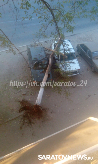 В Саратове накануне днем старое дерево упало на припаркованные машины. Увиденным в группе "Саратов Онлайн" в социальной сети "ВКонтакте" поделился очевидец события.
