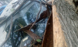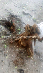 Эдуард Искалиев рассказал, что на пересечении улиц Степана Разина и Посадского старое прогнившее дерево упало на два автомобиля, припаркованных под ним. Дерево повредило крышу и капот "ВАЗ 21114" и "Нивы".