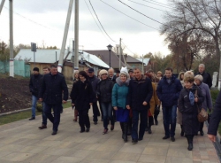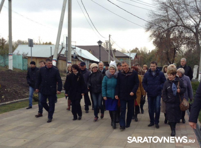 Благоустройство Вольска в соответствии с проектом проходит в несколько этапов. Учитываются мнения и пожелания жителей города. Городской парк с набережной соединит новая улица. Уже сейчас на ней уложена новая плитка, разбит газон, есть велодорожки. С этой зоны будет убрана автостоянка, демонтированы опасные бетонные плиты. Запланированный объем работ выполнен на 98 процентов. До 1 ноября установят малые архитектурные формы. Во время визита проходил монтаж столбов освещения.