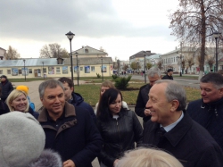 Володин отметил хорошие темпы и качество строительства. Также наш земляк встретился с общественниками, директорами школ, учреждений культуры, заслушал проектные предложения о создании пешеходной зоны.