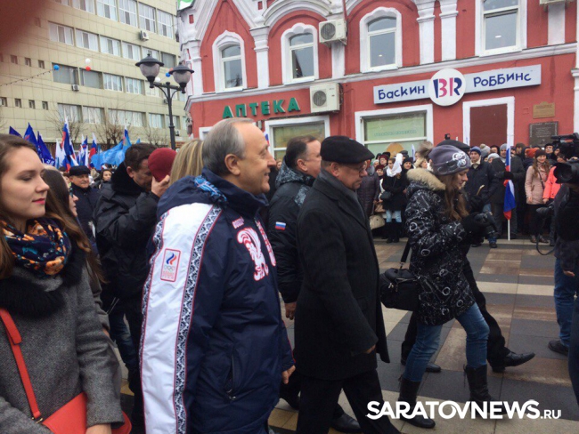 "Добрый день уважаемые земляки, дорогие гости! Очень приятно, что сегодня, в День народного единства на этой площади собрались саратовцы всех поколений. Сюда приехали представители всей области. И это не случайно. Ведь по инициативе Вячеслава Володина принято решение не просто продлить пешеходную зону, а создать новую пешеходную универсальную зону, которая будет работать и для спортсменов, и для маломобильных групп населения, и для просто отдыхающих горожан и гостей. Это начало большого проекта реконструкции городского пространства города Саратова. Это пилотный проект, который войдет в 15 пилотных проектов Российской федерации. И сегодня архитектурное агентство "Стрелка" занимается вместе с нашим политехническим университетом, вместе с нашими общественными экспертами, для того, чтобы мы сделали именно ту среду обитания, которая необходима каждому жителю, от малого до великого. Вот это главная цель и задача. Непростая сегодня и экономика, и вчера она была, и предполагаем мы: будет сложно. Но мы на этом не зацикливаемся. Ищем решения. И сегодня по инициативе Вячеслава Викторовича Володина, было заключено соглашение с городом Москвой, и они помогли нам и подставили плечо. Сегодня мы продлили пешеходную зону, которая была первая в Советском Союзе. Мы сегодня сделали совсем другую пешеходную зону, которой даже наверное нет в Москве. Мы ее закольцуем, и это будет восемь километров. Она должна быть обустроена, она должна быть привлекаема", - сказал глава региона.