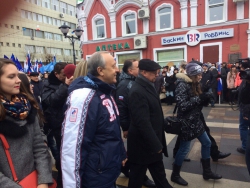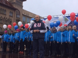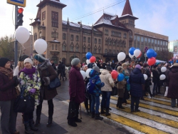 В настоящее время собравшиеся с губернатором прогуливаются по пешеходной зоны. Организованы выступления творческих танцевальных и вокальных коллективов города, игры для детей,