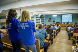 В актовом зале академии, где прошло общее организационное собрание, перед будущими студентами выступили представители руководства СГЮА, подробно рассказавшие о специфике обучения в Саратовской государственной юридической академии. Сергей Туманов, первый проректор, проректор по учебной работе, поприветствовал собравшихся от имени ректора, профессора, депутата Саратовской областной думы Сергея Суровова, отметив, что СГЮА по данным независимого рейтингового исследования, проведенного несколько дней назад Министерством образования и науки РФ, в котором приняли участие более 500 вузов России, академия заняла III место по общему количеству баллов и IV место по критерию "Качество образования". Наталия Проданова, ответственный секретарь приемной комиссии, в своем выступлении подробно остановилась на правилах приема на обучение и нововведениях в приемной кампании 2017 года, подчеркнув, что с полным списком правил и другими регламентирующими документами можно детально ознакомиться на официальном сайте СГЮА в разделе "Поступающим", а также отметила, что Минобрнауки России ежегодно выделяет стабильно большое количество бюджетных мест вузу (956), что говорит о высоком уровне доверия со стороны федеральной исполнительной власти.