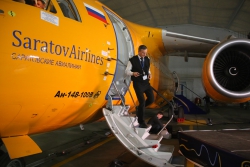 ОАО "Саратовские авиалинии" приняли в свой воздушный авиапарк новое судно. Презентация нового самолета АН-148 состоялась сегодня в авиационном ангаре компании, отпраздновавшей в этом году свое 85-летие. Новый самолет прилетел в Саратов в минувшую субботу.