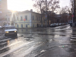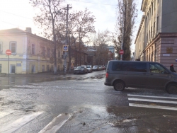 В центре Саратова, напротив 6-й городской детской инфекционной больницы, горожане заметили крупную коммунальную аварию. На перекрестке улиц Соборная и Григорьева, недалеко от медицинского учреждения, по дороге течет вода.