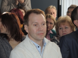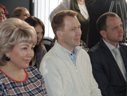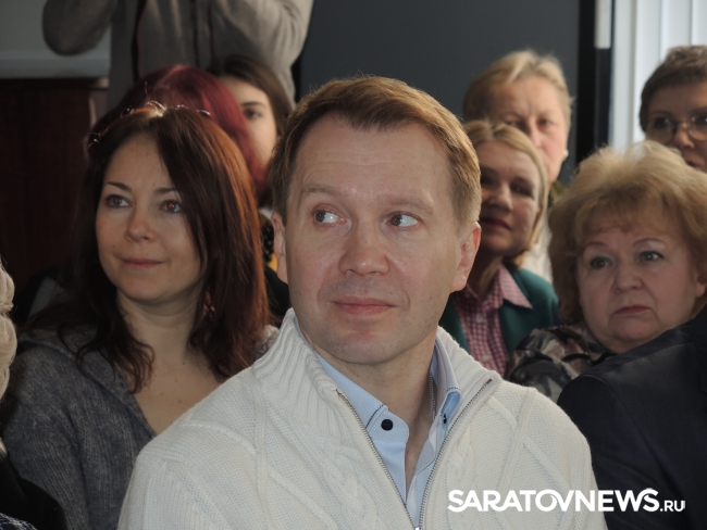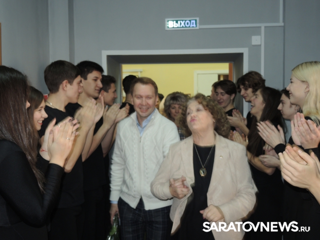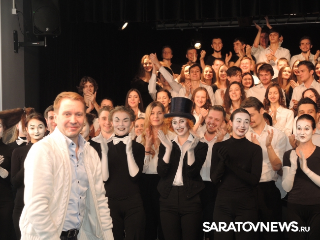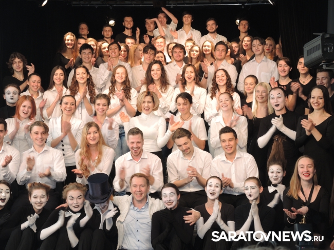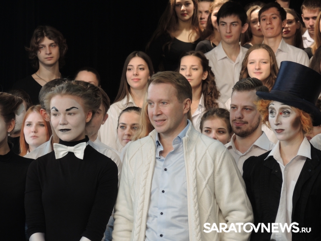 Сегодня в здании Саратовского театрального института студенты и сотрудники учреждения поздравили Народного артиста России, художественного руководителя Театра Наций Евгения Миронова с 50-летием.