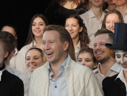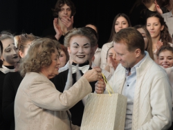 Перед постановкой артисту подарили цветы, картину с консерваторией и назвали его "настоящим человеком, героем нашего времени".