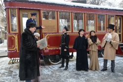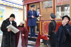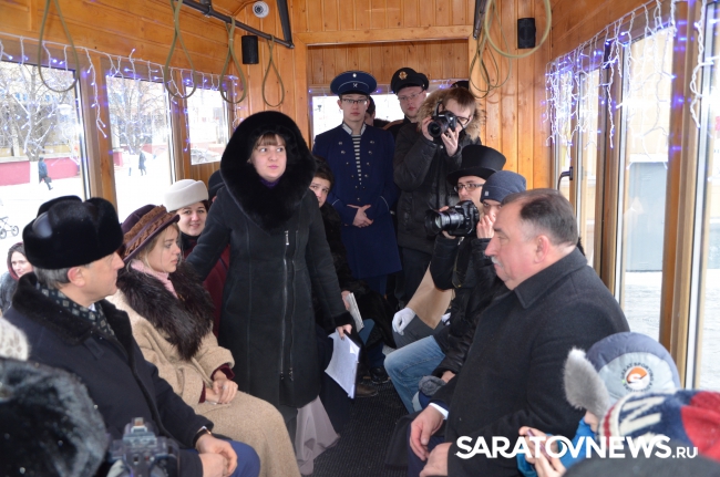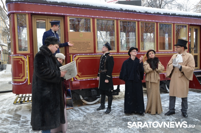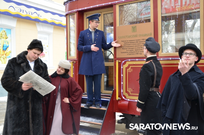 На площадке перед трамваем активисты молодежного движения "Любимый город" создали атмосферу тех лет, когда вагон впервые вышел на линию. В костюмах начала XX века молодые люди устроили популярный флеш-моб "Манекен-челлендж". Поприветствовав Губернатора и главу города, представители творческой молодежи прочитали стихи той эпохи и стихи собственного сочинения о Саратове. Самая юная участница театрализованного представления Валерия Сулима напомнила, что именно глава города Валерий Сараев в свое время анонсируя планы по установке старинного трамвая на одной из центральных улиц города выступил с идеей театрализованного представления молодежи в костюмах прошедшей эпохи. Воплотив эту идею, активисты движения "Любимый город" подарили хорошее настроение саратовцам.