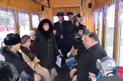 Экскурсовод рассказала первым гостям, что трамвайное сообщение в Саратове было организовано в 1908 году. Размещенный на пешеходной зоне вагон Кировского трамвайного депо так же, как экскурсионный ретро-трамвай "Яша" имеет собственное имя "Семен". Подобные трамваи маршрута №6 перевозили саратовцев и гостей нашего города от железнодорожного вокзала до пристани. Маршрут "Вокзал-Волга" проходил как раз по улице Волжской (в то время – Армянской).
