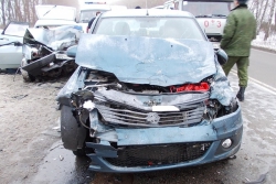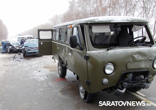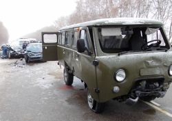 Авария произошла сегодня в 7.15 на 282 километре автодороги "Курск-Саратов" в Панинском районе. 34-летний житель Саратовской области, управляя "УАЗ-220695", не учел погодные условия. В результате автомобиль вылетел на полосу встречного движения, где столкнулся с "девяткой" под управлением 56-летнего воронежца, а затем с "Рено Логан", которым управлял 44-летний саратовец. В результате лобового столкновения постарадали водитель "буханки", водитель и 28- и 35-летние пассажирки "девятки". Пострадавших доставили в медицинское учреждение. Сейчас полиция выясняет обстоятельства произошедшего.
