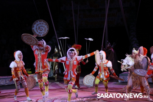 В саратовском цирке начались новогодние городские елки. Собравшиеся дети и их родители увидели представление "Бриллиантового цирка России". Они представили публике новую праздничную программу "Северное сияние".