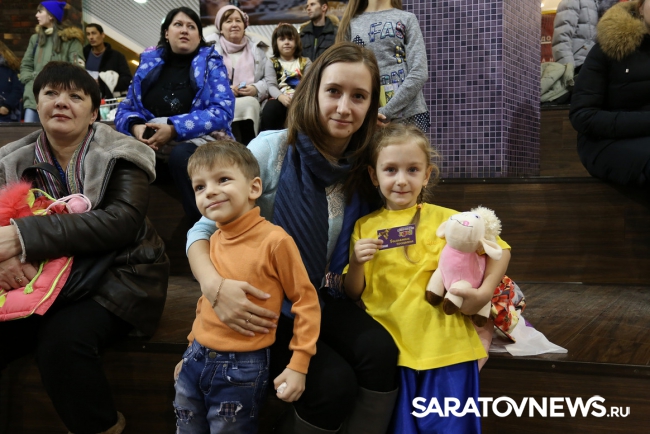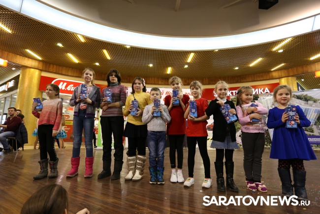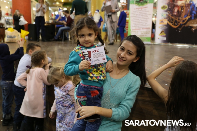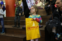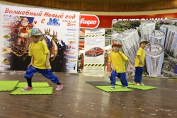 В центре главной площадки, специально к Новому году установили наряженную елочку. Вокруг нее дети и их родители водили хороводы, пели песни и, конечно, получали подарки от партнеров мероприятия.