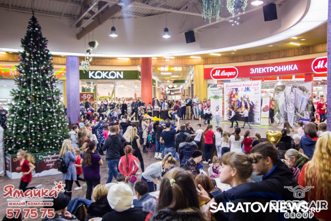А тем временем, концерт продолжался. На сцене песни и танцы исполняли представители поволжского кооперативного института, танцевальной студии "Эксперимент" детского центра"Я сам" и "Акуна Матата". Ученики Частного Лицея-интерната естественных наук (ЛИЕН) устроили яркий танцевальный флеш-моб – так, что гости тоже танцевали вокруг елочки. ЛИЕН является одним из флагманов качественного школьного образования нашего города. Постоянно участвует в культурно-образовательных акциях и праздниках, подчас выступая площадкой, организующей их проведение (флешмобы: MathCat и Тотальный диктант, проекты Живые шахматы и вернисажи саратовских художников).