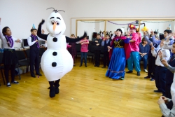 Подарки детям вручил Дед Мороз, а герои мультфильма "Холодное сердце" принцесса Анна и снеговик Олаф провели для ребят развлекательную программу и бумажное шоу. Дети с удовольствием читали стихи, пели для Деда Мороза песни, а также участвовали в конкурсах и викторинах. В завершение праздника 28 воспитанников получили подарки.