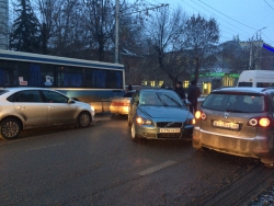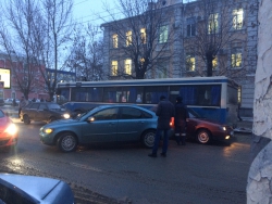 В результате столкновения полностью блокировано движение из центра города по направлению к железнодорожному вокзалу. Значительно затруднено и движение в центр города, поскольку общественному транспорту приходится объезжать место аварии по встречной полосе.