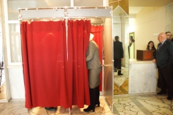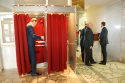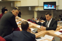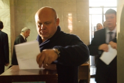 В урне для голосования было обнаружено 34 бюллетеня. Недействительный бюллетень - один. За сложение полномочий Сергея Наумова проголосовал 31 депутат, против - два депутата.